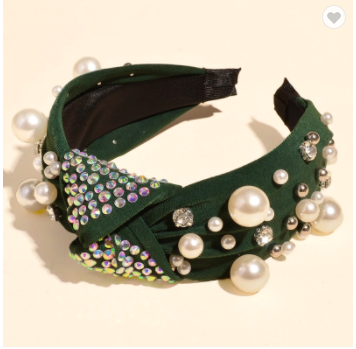 Emeralds Rhinestone Knotted Headband Fabric