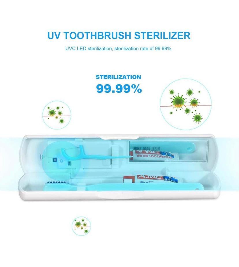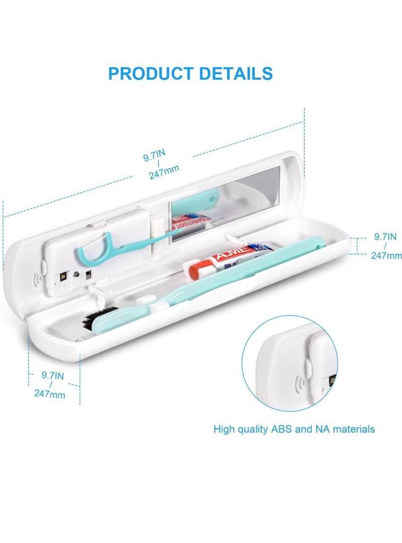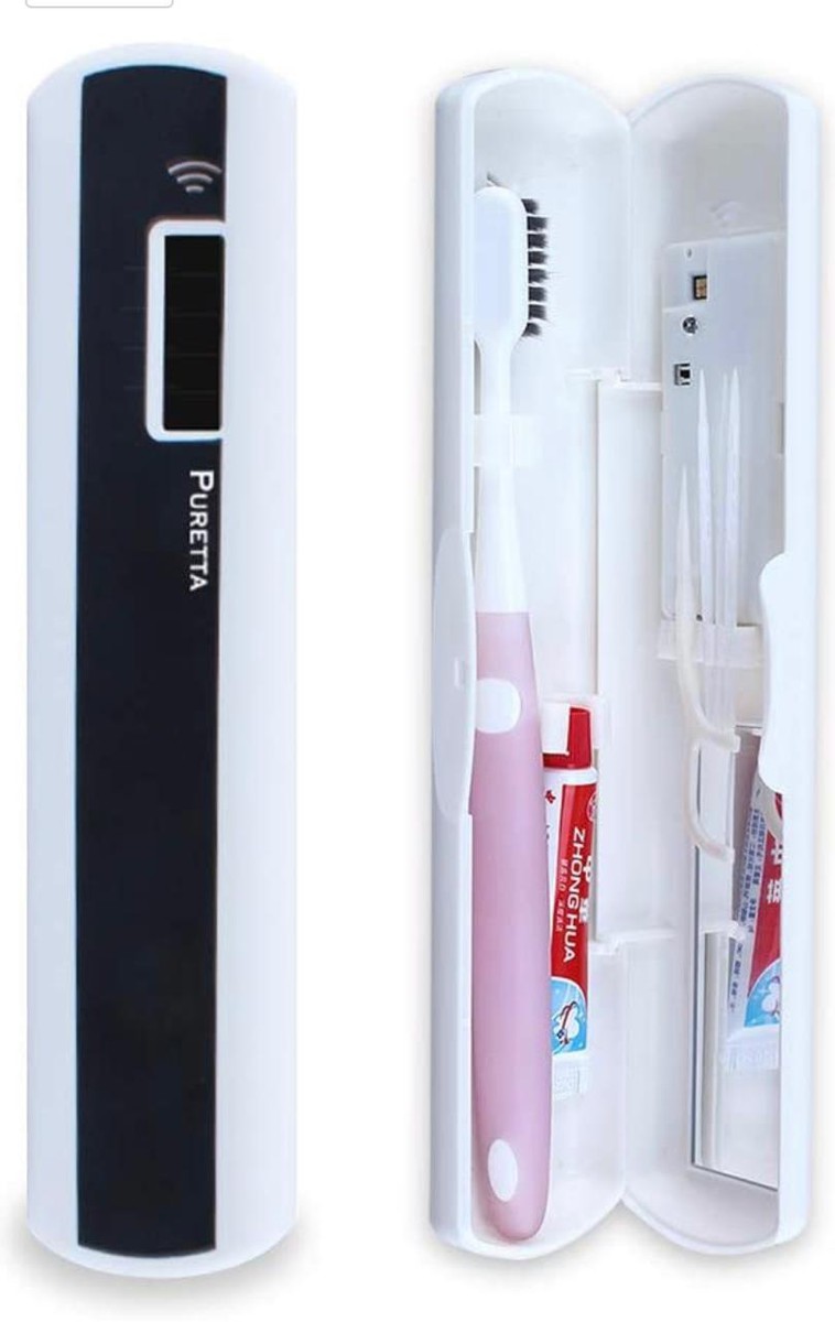 Puretta Portable Toothbrush Sanitizer Case UVC Smart Travel Toothbrush Sterilizer Holder UV cleaner Toothbrush Box Rechargeable purify toothbrush container (BLACK)