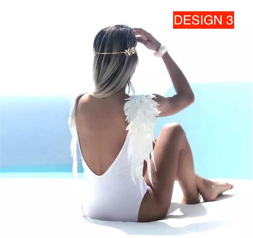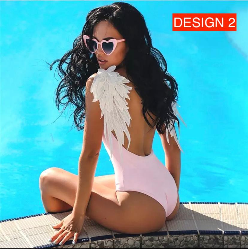 One Piece Backless Strap Swimsuit Wing Angel Monokini Beachwear Stretch Bodysuit Flower Swimwear Beachwear