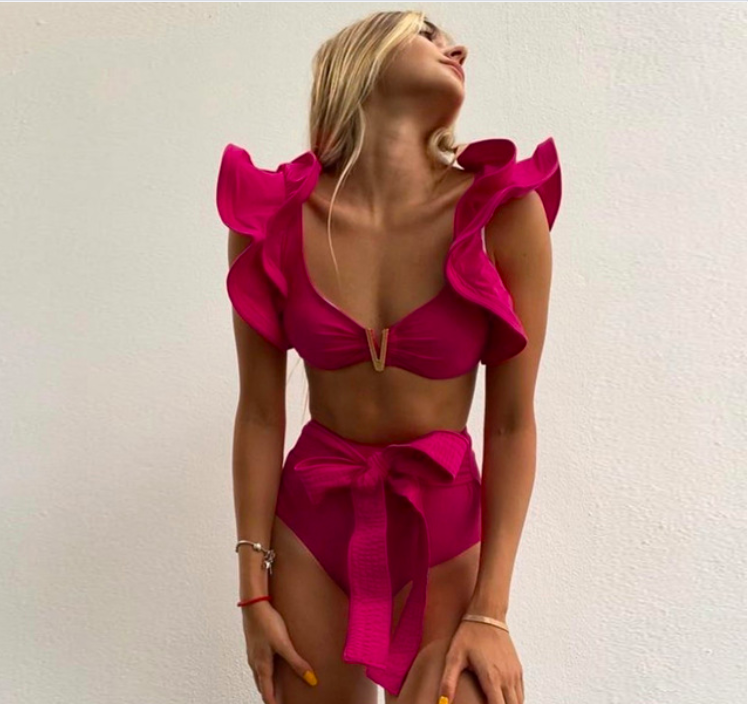 #SW159 One Shoulder Brazilian Bikini Set High Waist Ruffle