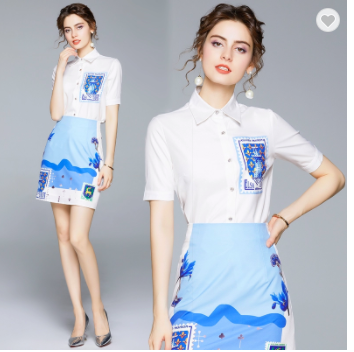 #1332 Skirt suit slim shirt women's age-reducing western style goddess fan two-piece suit