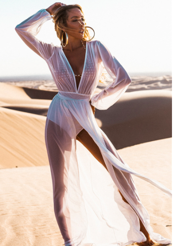 Long Sleeves Split Long Beach dress Chiffon Cover ups women bikini beachwear