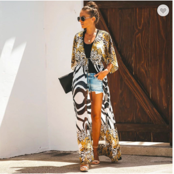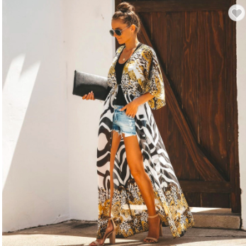 Restocking Oct 30th 2021 Chiffon Zebra Leopard Print Long Kimono Cardigan Beach Cover Up With Drawstring
