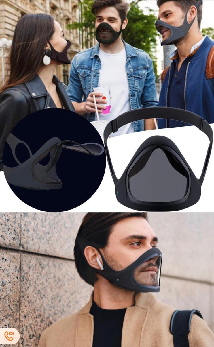 Reusable smart clear mouth face covering with visible screen anti-fog system & magnetic frame