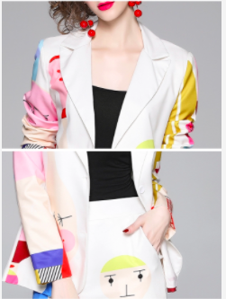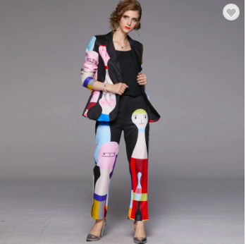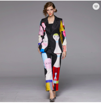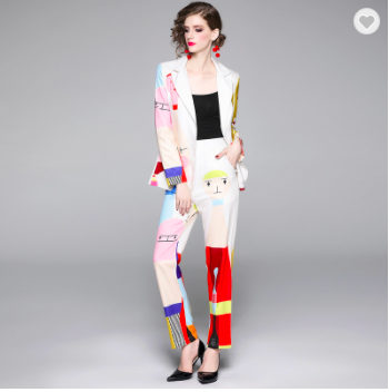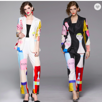 #6561 Print Blazer with Vintage Version Pants Women Set