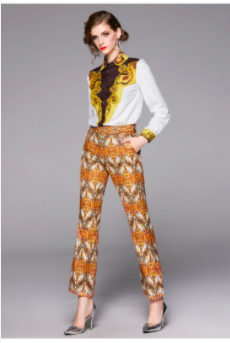 #8106 Turn Down Collar Positioning Print Long Sleeve Button Shirt