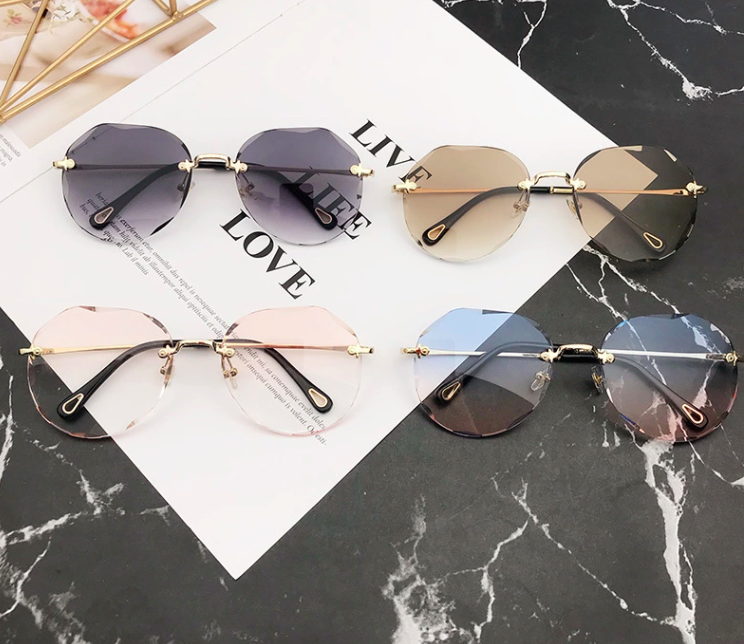 Sunglasses Rimless Diamond cutting Lens Brand Designer Ocean Shades Vintage Sun Glasses Material Frame:Metal Lens: PC Color Multi-colored