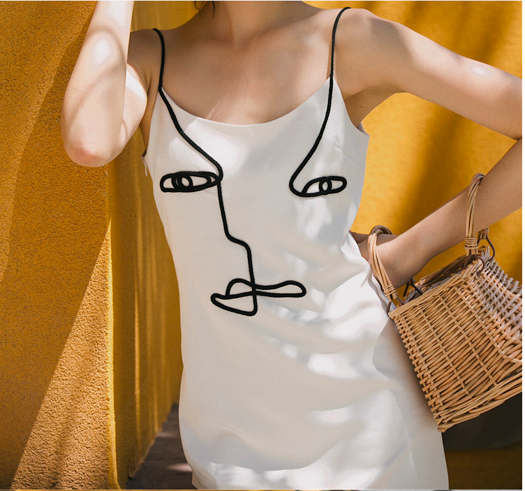 #WC708 Spaghetti Strap Dress Abstract Art Slip Mini Dress