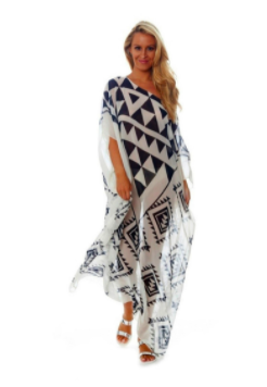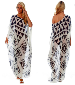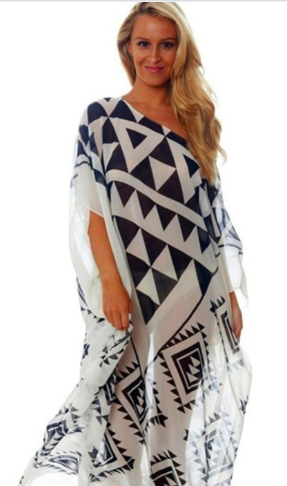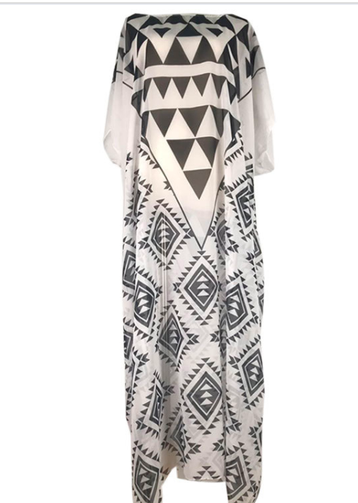 #SW009 Geometric Print Chiffon Kaftan Dress Beach Cover Up