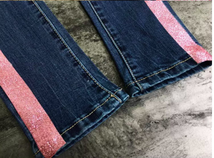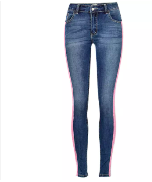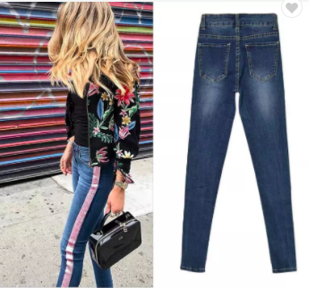 #658 Women's mid waist slim fit jeans side strip hot powder stretch denim washed cat whiskers