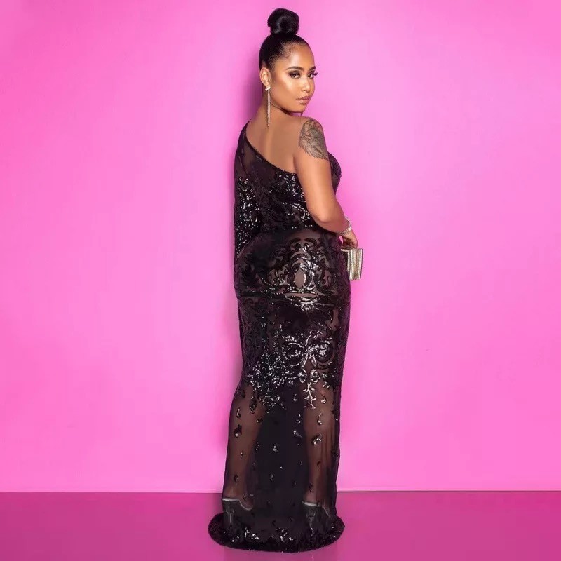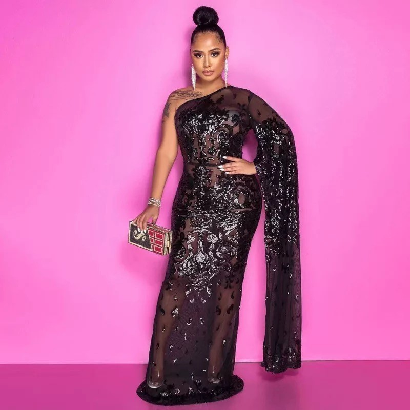 #9702 Long Sleeve Hollow Out Lace Patchwork Pleated Fashion Celebrity Light Blue Slit Long Party Evening Dresses