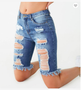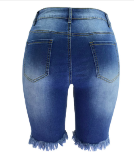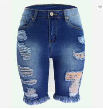#6098 spring hot style skinny elastic women jeans short pants trend ripped Jeans