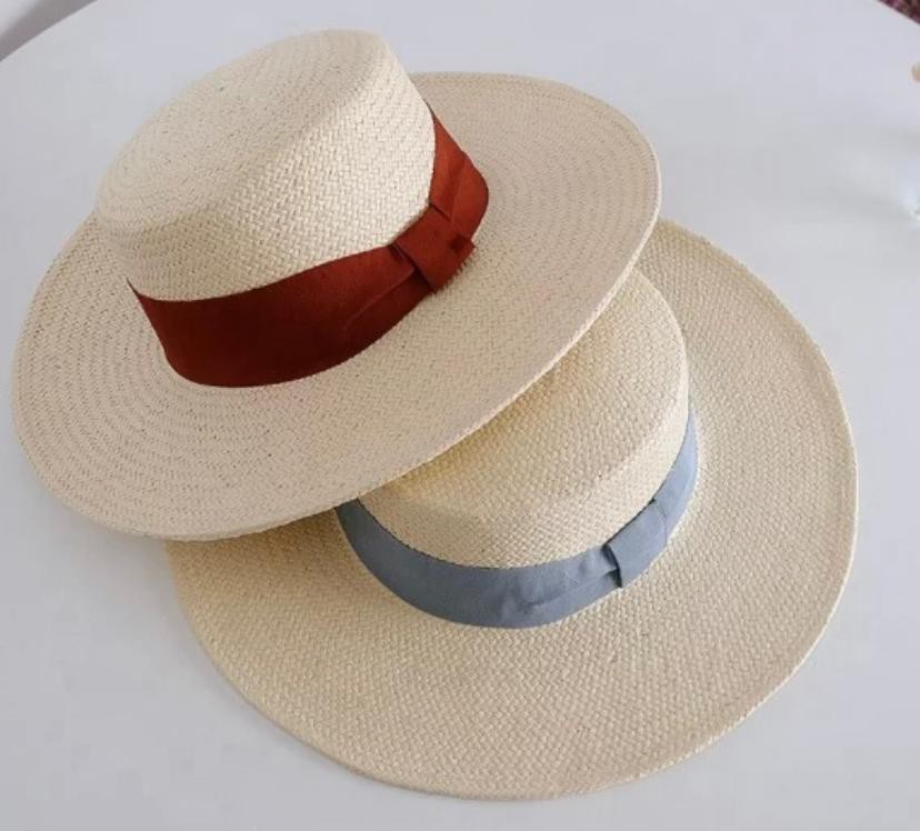 8 Bu Hand Weave Boater Straw Hats with Gros Grain Band and Bow