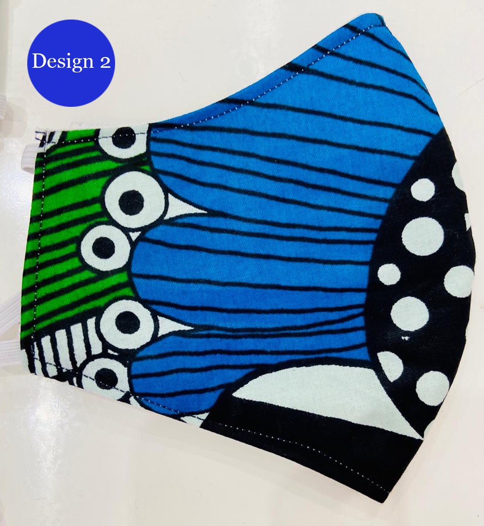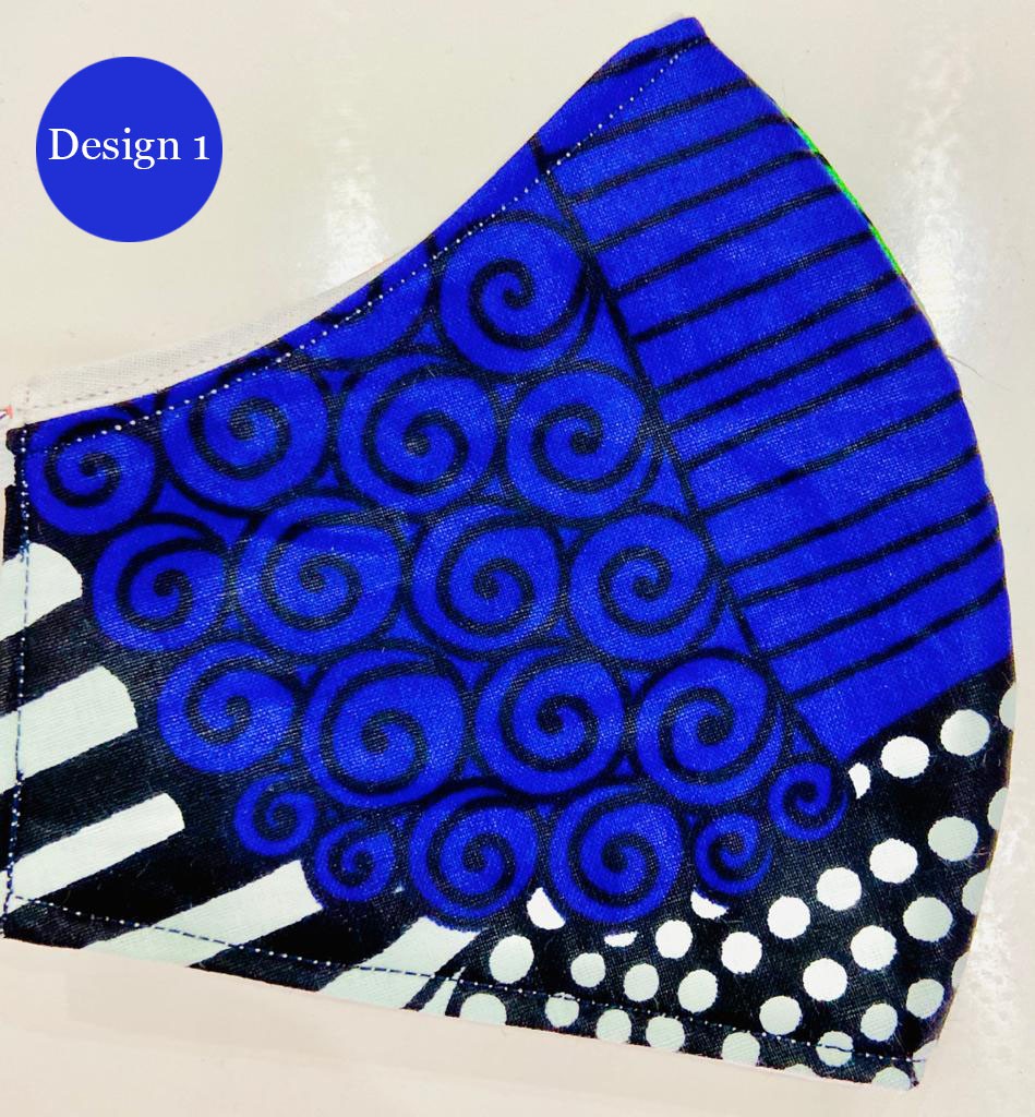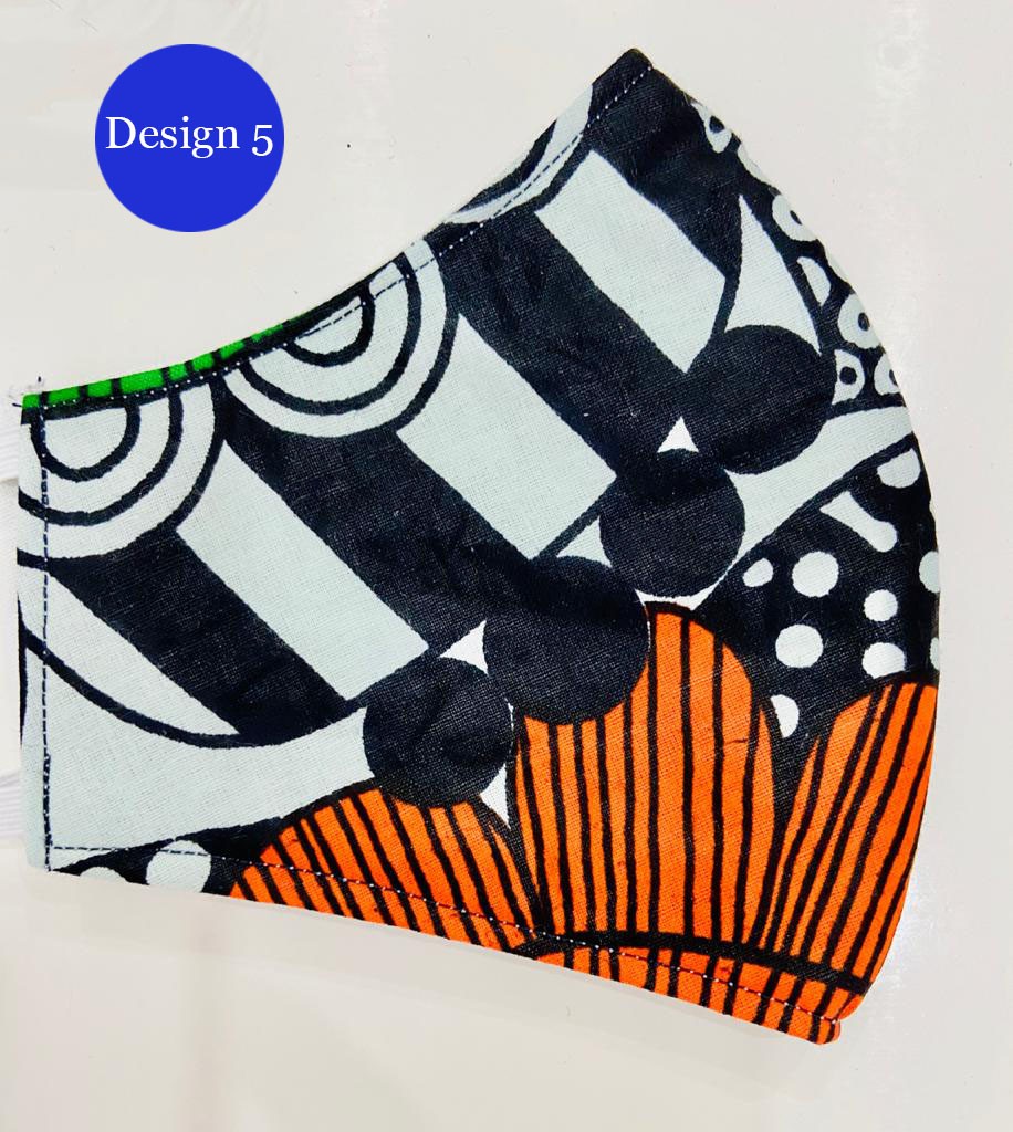 African print 3 layer masks with filters . CDC template design 100% natural fabrics.