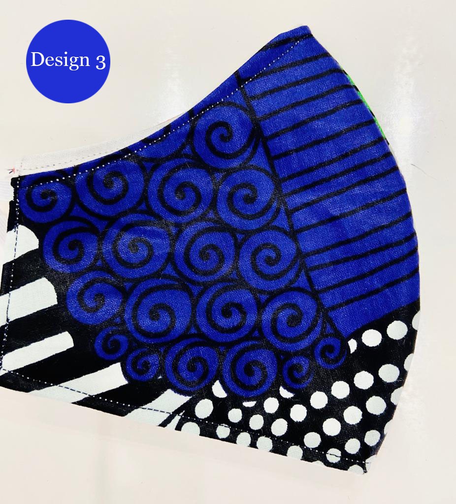 3 LAYER FILTERED MASK (STYLE 2) UNISEX - AFRICAN PRINT BLUE WITH BLACK NUTS