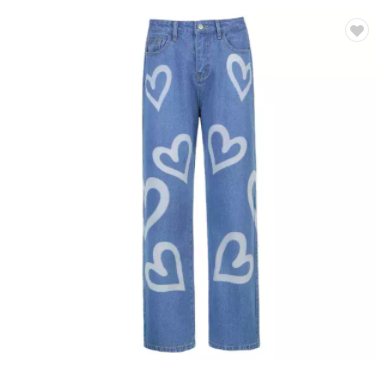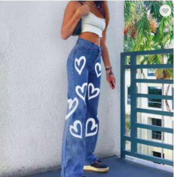 #8943 Vintage Heart Love Printed Jeans Women High Waist