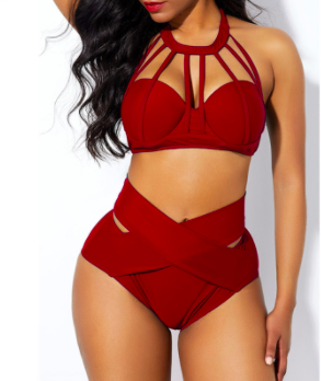 #SW686 Hollow out cross strap neck bikini