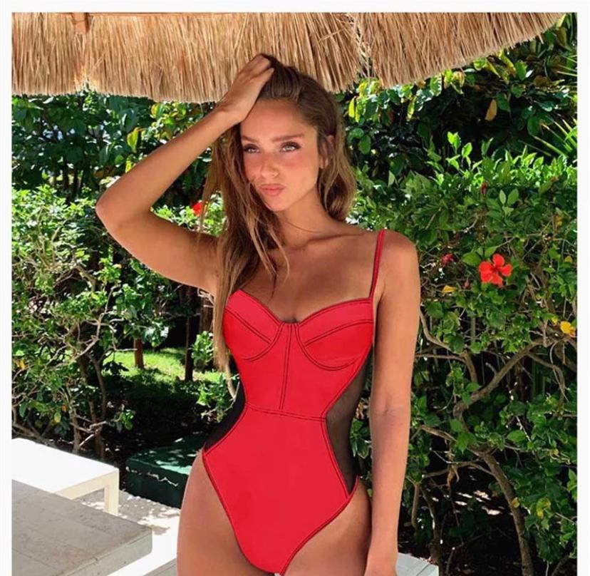 Black Red One Piece Swimsuit Women Bandage Bathing Suit Female Swim Beach Wear