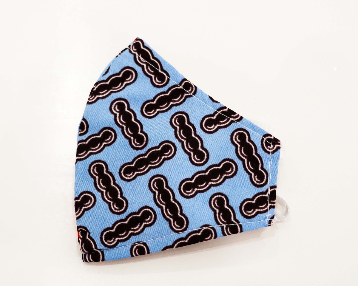3 LAYER FILTERED MASK (STYLE 2) UNISEX - AFRICAN PRINT BLUE WITH BLACK NUTS