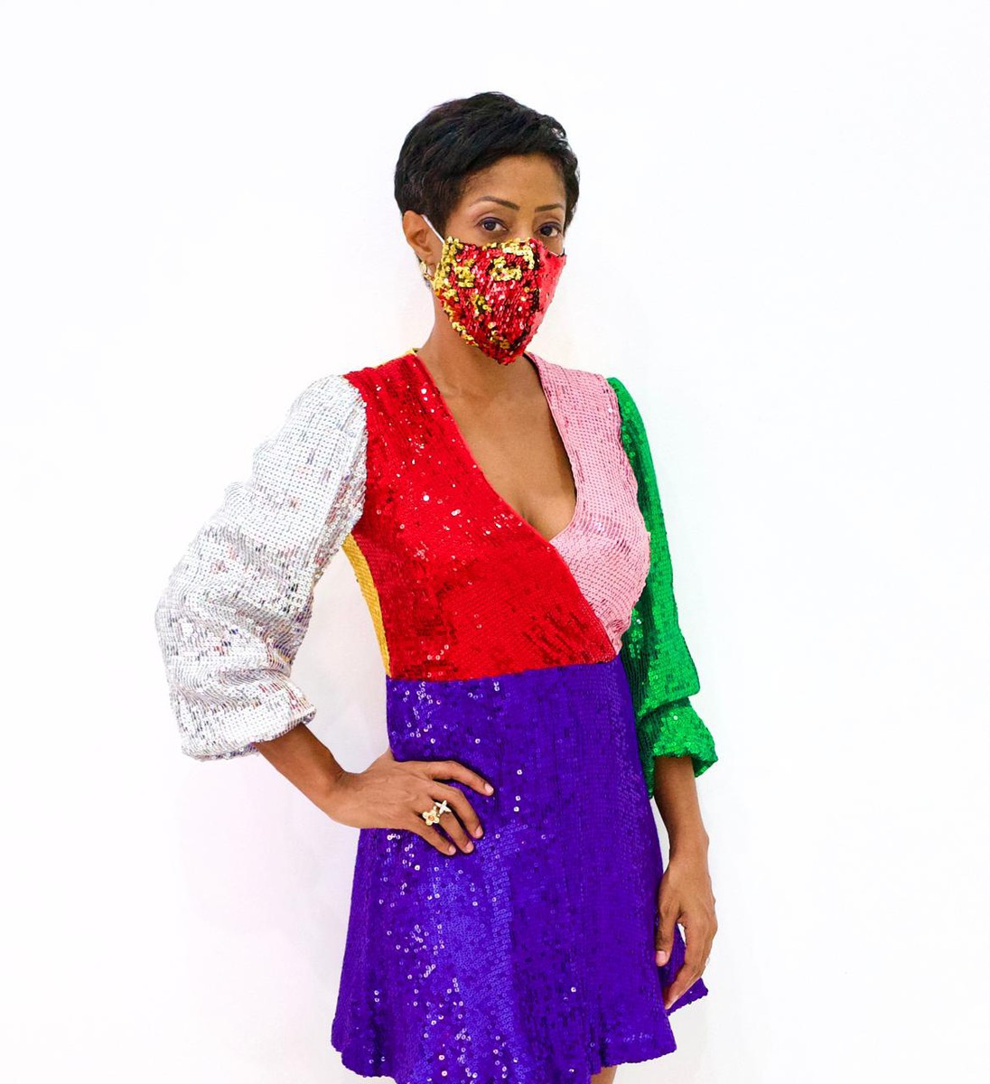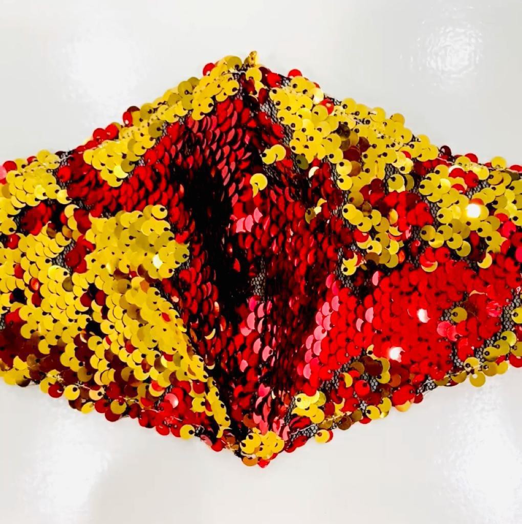 GLAM MASK COLLECTION (STYLE 3) YELLOW & RED SEQUIN