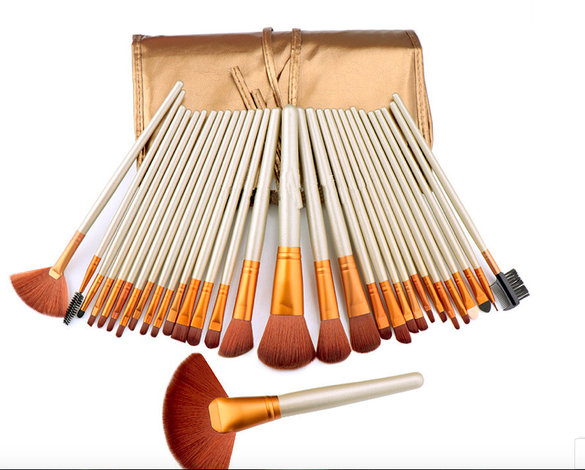 32pcs/set superior quality cosmetic brush set with PU print bag for dresser make-up fibre brush set high end