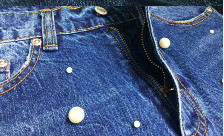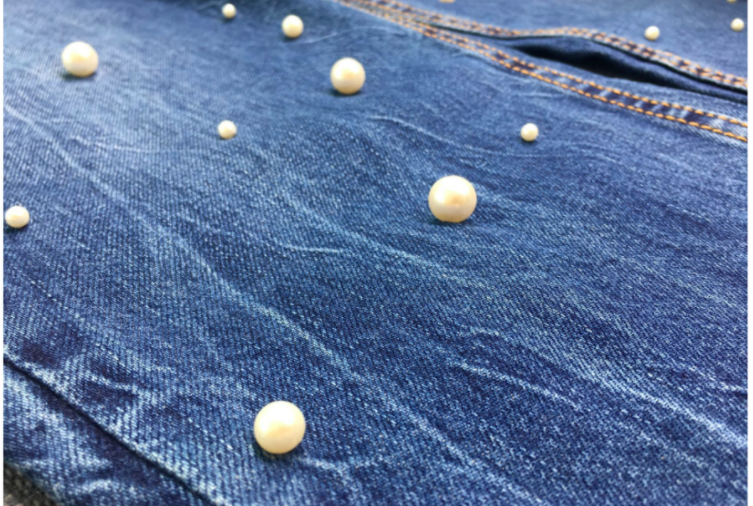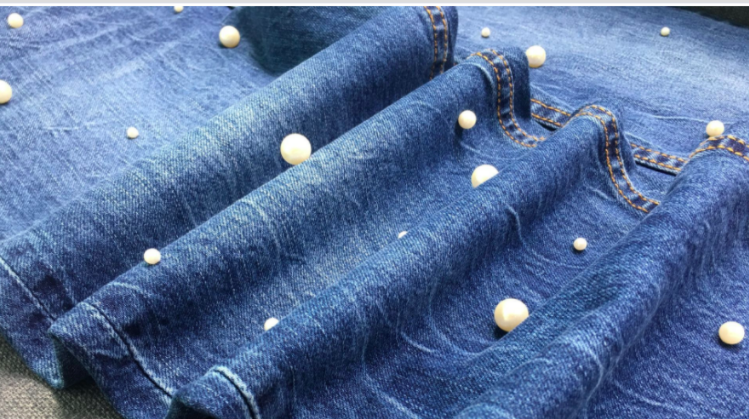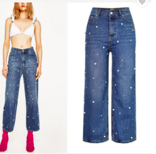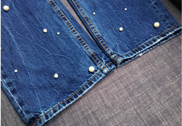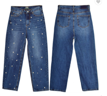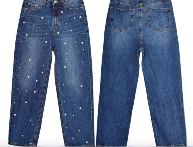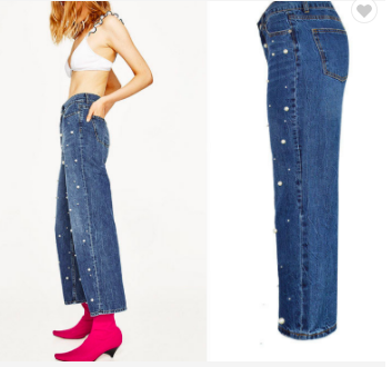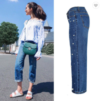 #266 High waist straight loose wide leg denim flared trousers pearl studded ladies fashion jeans