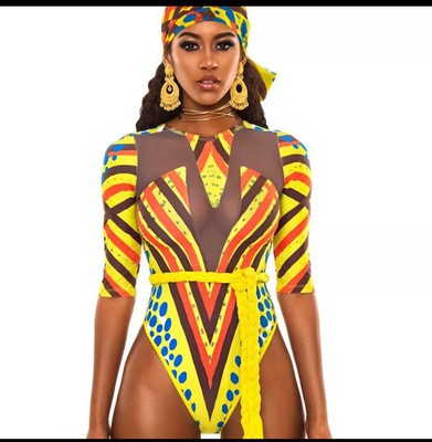 #SW0010 African digital print one pice with blue spots long sleeve$88.97