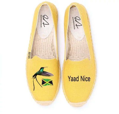Bun and cheese with Jamaican flag and Dr. Bird espadrille shoe$150.00