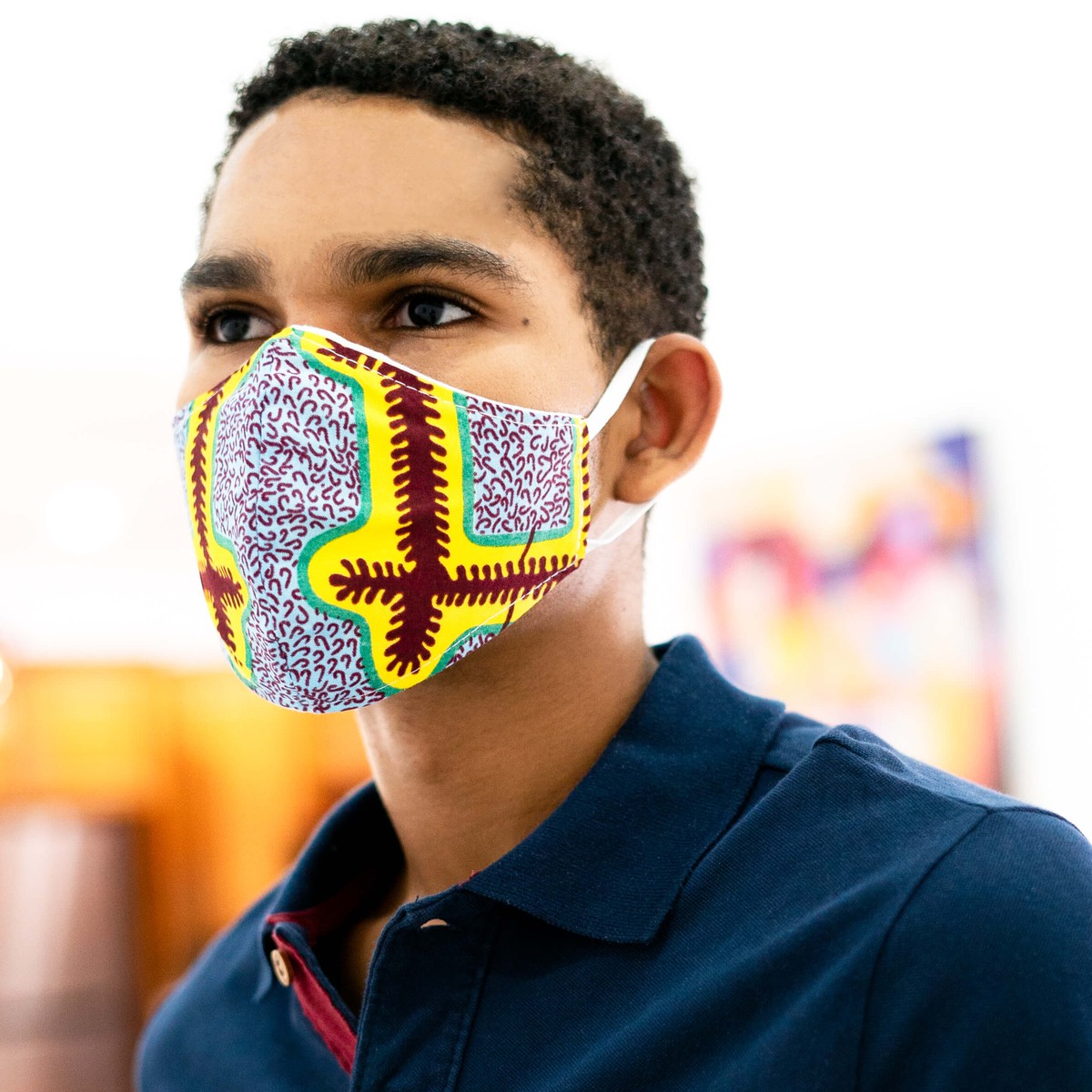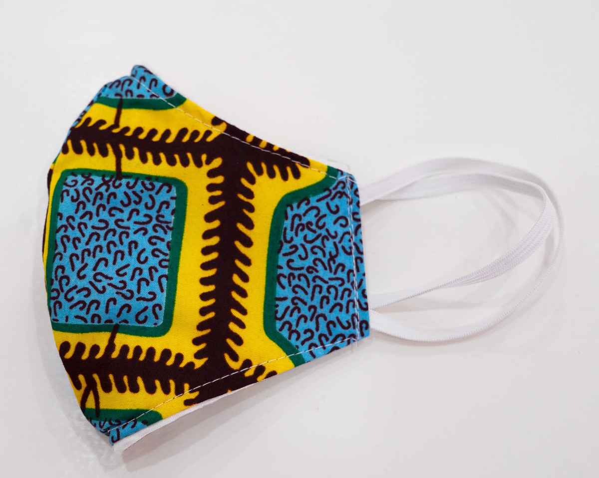 3-LAYER FILTERED MASK (STYLE 2) UNISEX - AFRICAN WARRIOR PRINT YELLOW BLUE BROWN TRACKS