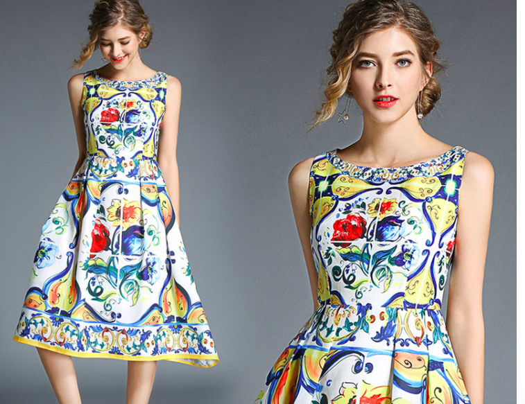 Floral Waistline: empire Neckline: O-Neck Dresses Length: Knee-Length Style: Vintage, Casual Wear Silhouette: A-Line Season: Summer, Summer Sleeve Length(cm): Sleeveless Decoration: Appliques, Draped, Lace, Embroidery, Zippers Material: Polyester / Cotton, 100% Polyester,Tapestry Fabric Type: Other Technics: Other Feature: Anti-Static, Anti-wrinkle, Breathable, Dry Cleaning, Sustainable, Plus Size, Washable Sleeve Style: Sleeveless Fashion Element: Vintage