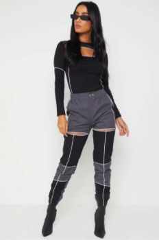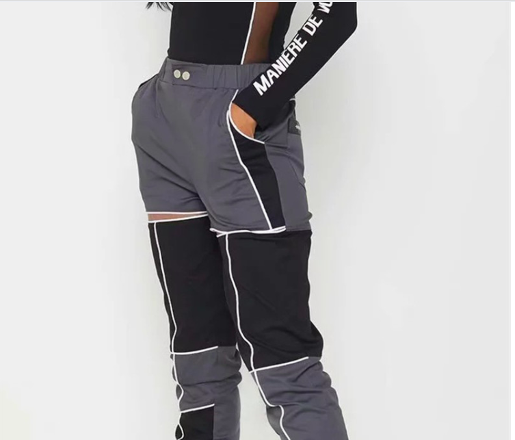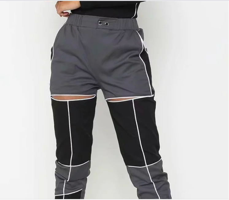 #WC2004 Hollow Out Patchwork trousers High Waisted Streetwear Cargo Pants