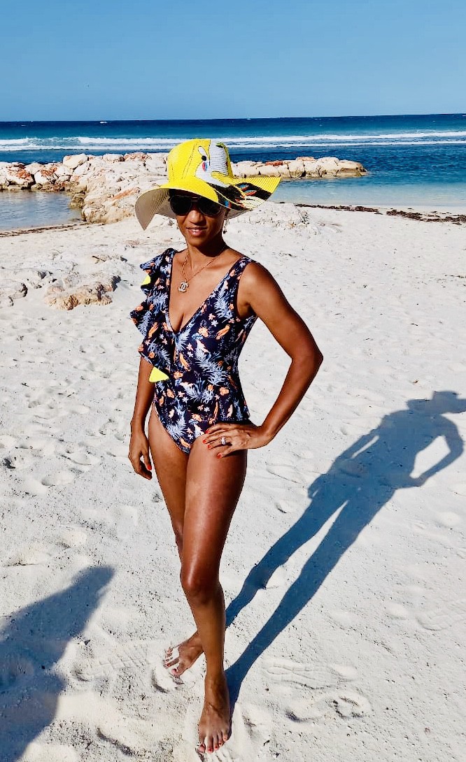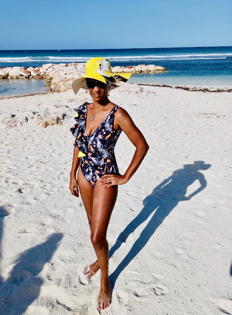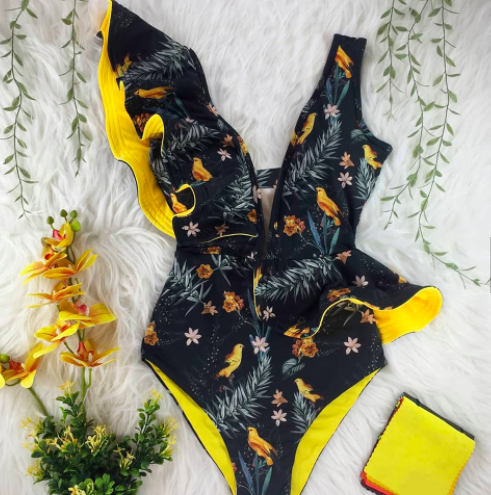 Swimsuit one piece ruffle print black and yellow