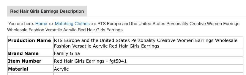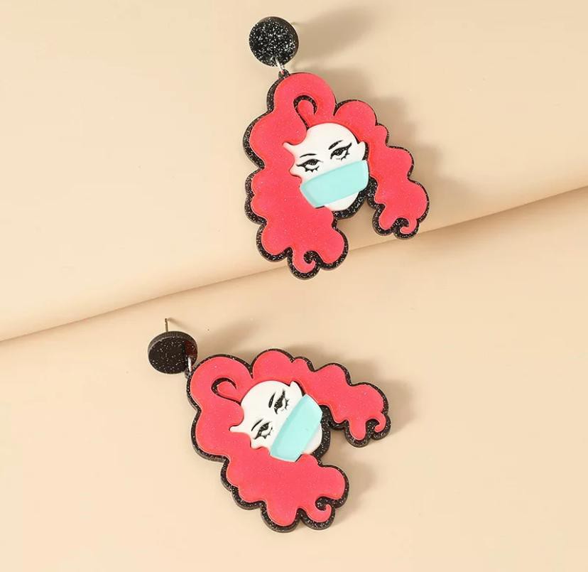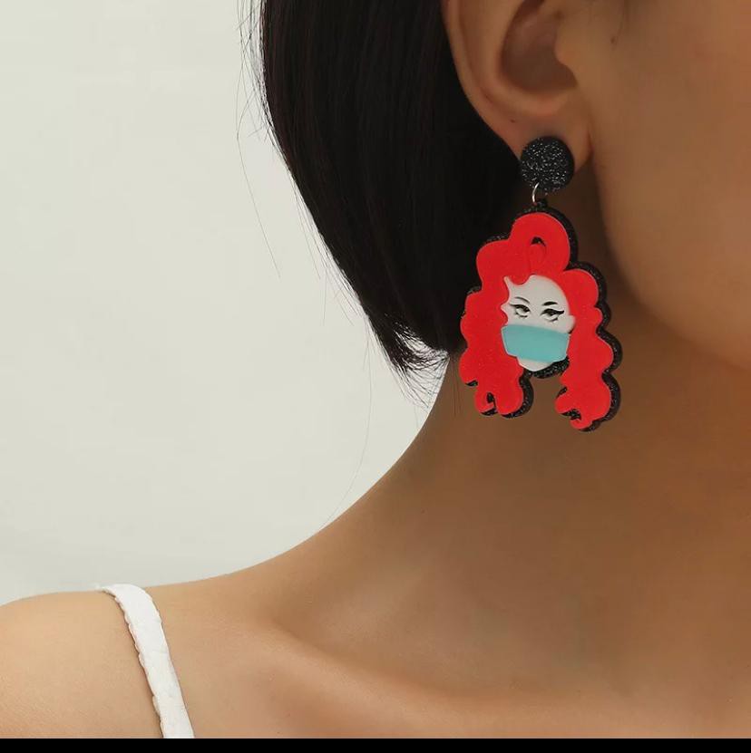 RTS Europe and the United Personality Creative Women Earrings Wholesale Fashion Versatile Acrylics Red Hair Girls Earrings