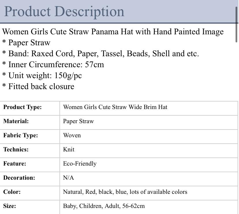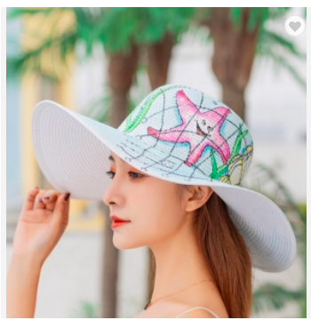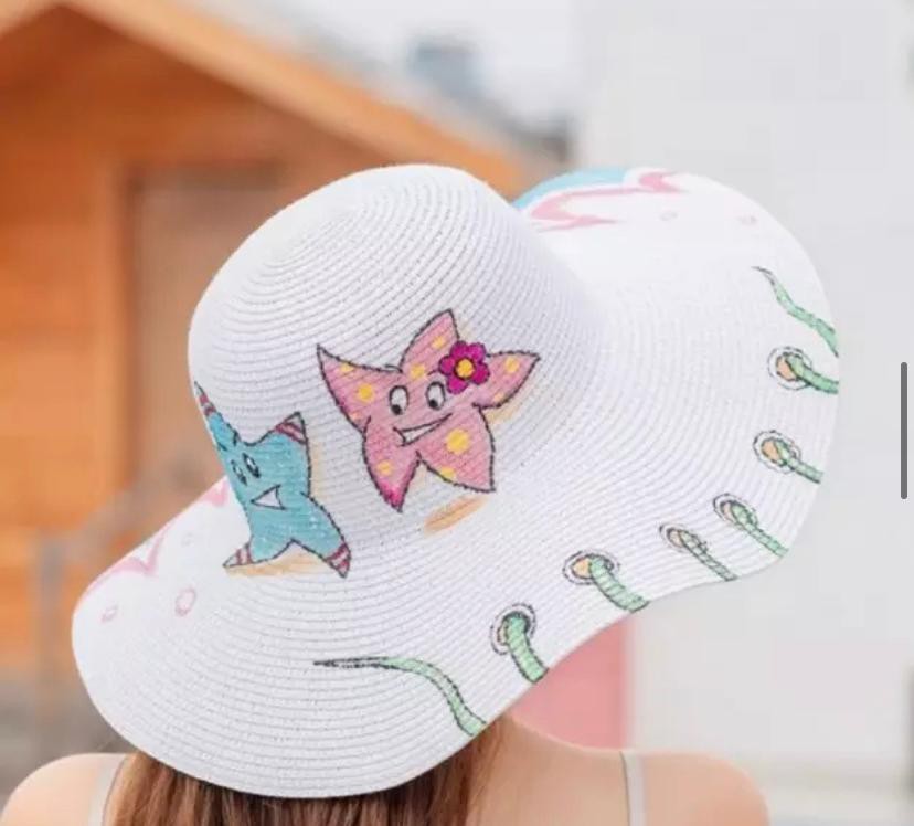 Women Girls cute Straw Wide Brim Hats with Hand Painted Image Ocean Design