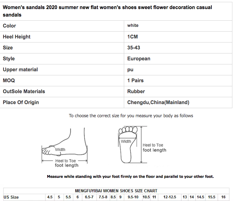 Women's sandals 2020 summer new flat women's shoes sweet flower decoration casual sandals Color white Heel Height 1CM Size 35-43 Style European Upper material pu MOQ 1 Pairs OutSole Materials Rubber