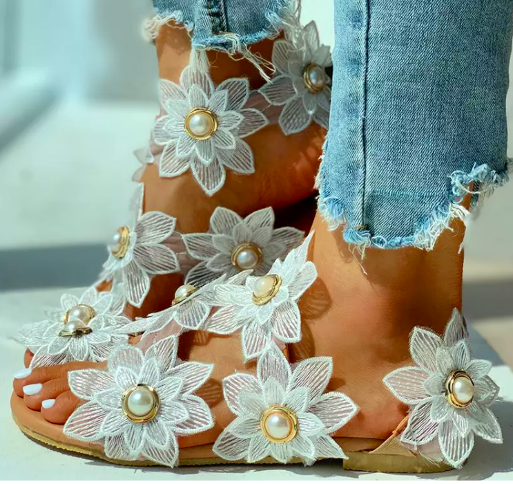 new flat shoes sweet flower decoration casual sandals