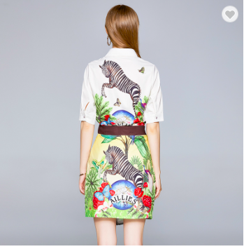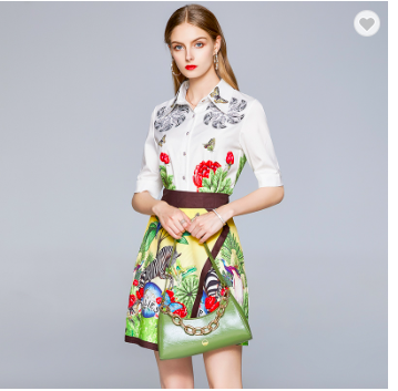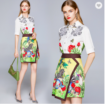 #3587 butterfly print short sleeve polo shirt with irregular skirt summer short two piece