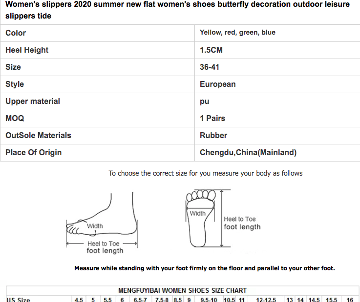 Please note: This flip flop runs 1/2 size or .5 larger. Recommendation by .5 smaller. Midsole Material: PVC Season: Summer Style: Mules Outsole Material: PVC Lining Material: Pu Feature: Quick-Drying Gender: Women Upper Material: Pu, Pu Product name: Flat bottom slippers Size: 36-41# MOQ: 1 Pairs Material: Rubber Outsole Color: Yellow, red, green, blue Use: Outdoor Pattern Type: Animal Prints