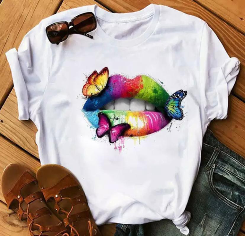 3D Nail Polish T Shirt - Colourful Butterfly Lips