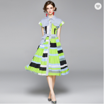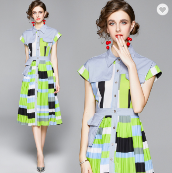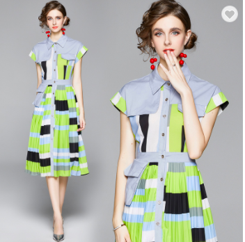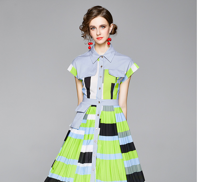 #WC2007 Casual Women Fashion Short Sleeve Patchwork Dress