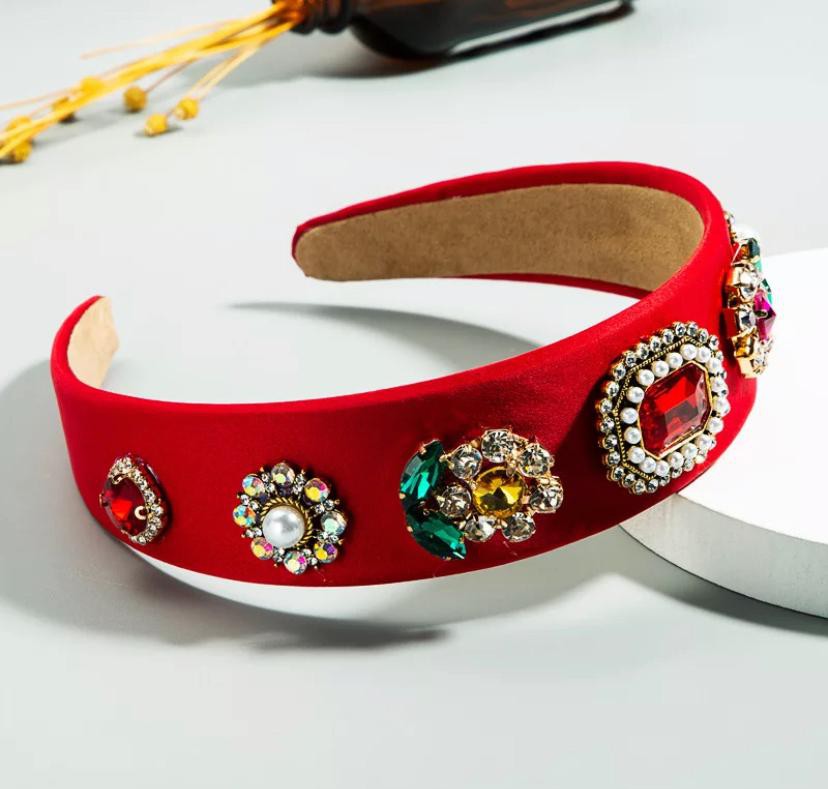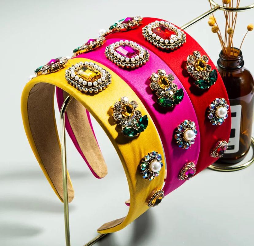 SOLD OUT! Baroque colored rhinestone flowers Hair Accessories crystal hairband Delicate Bling Pearl Baroque dinner Headband For Ladies