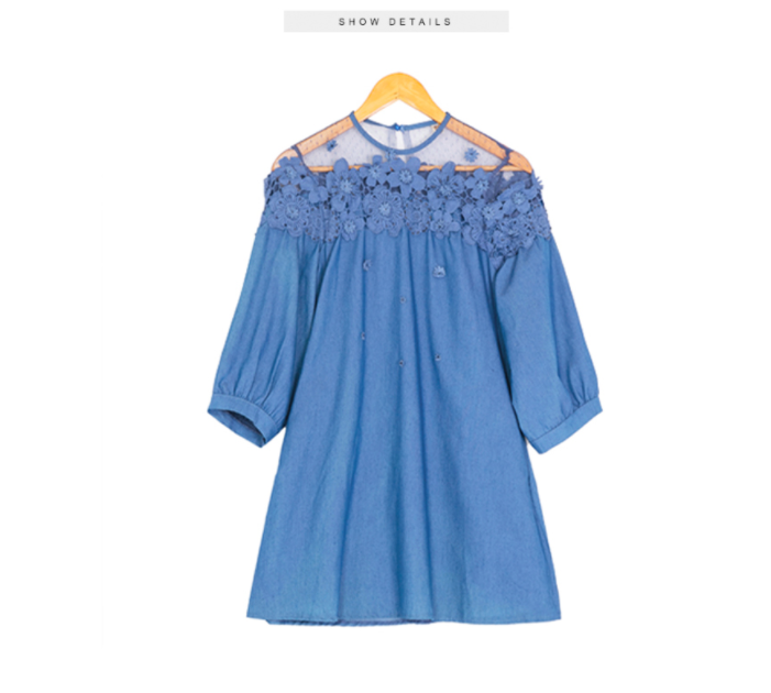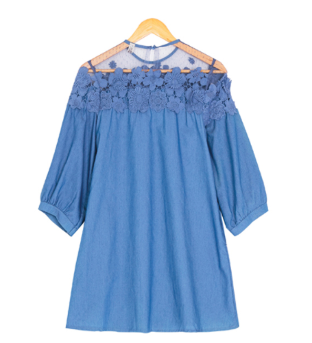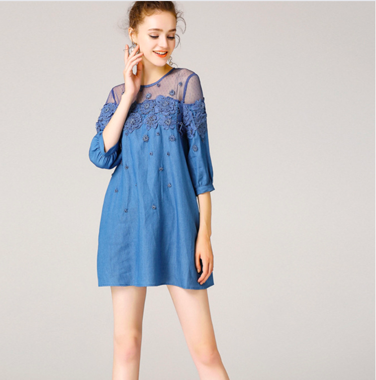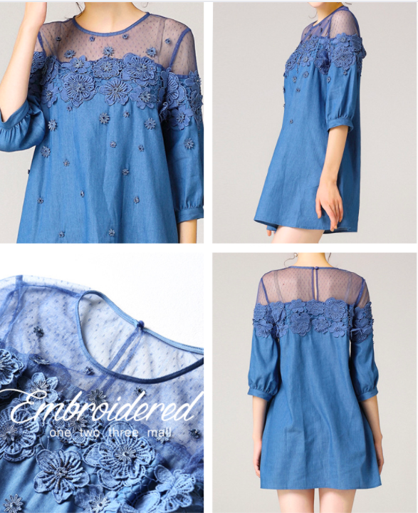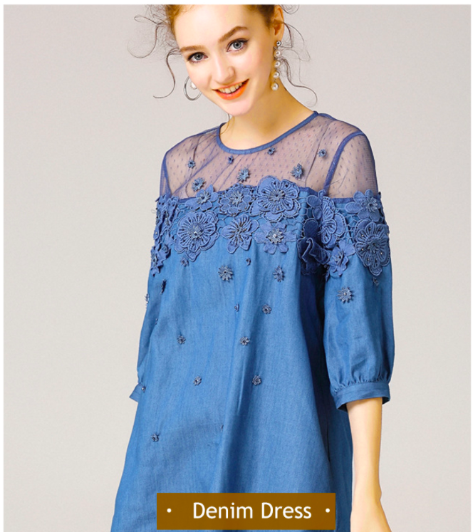 #WC702 Lace Bead Patchwork Half Sleeves Loose A Line Plus Sizes available Jeans Dresses