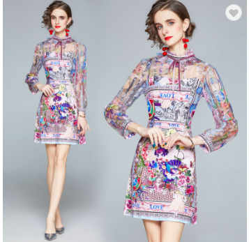 #8130 French elegant temperament high quality cartoon character round neck print casual dress$250.00