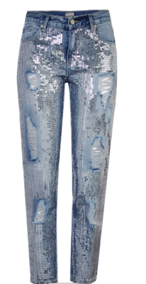 Jeans Mid-waist Loose Straight Denim Cropped Pants Super Popular Embroidered Sequins Washed Distressed$144.00