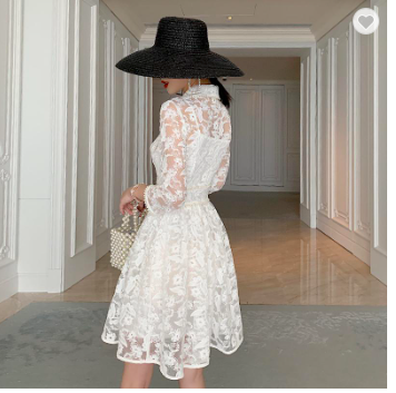 # 1688 graceful white mesh embroidered long sleeve polo neck wholesale price fashion casual$200.00