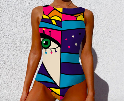 #396 Swimsuit Abstract printing one piece white and blush pink$60.00