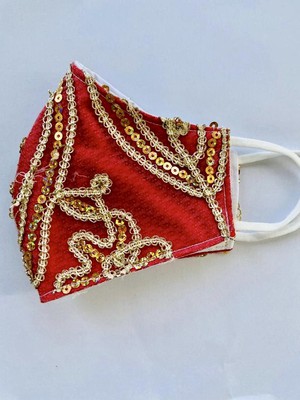 Face Mask 4 layers with filters: Delicate gold lace, embroidery and sequins$9.97