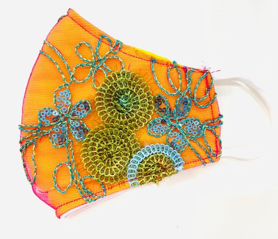 Embroidery and sequins 3 layer face mask with fusible filters CDC design with 100% natural fabrics : color lavender and orange$9.96