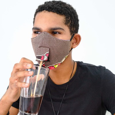 CLOTH FACE MASK FOR STRAWS (STYLE 4) UNISEX - AFRICAN PRINT BROWN$5.29