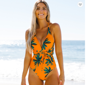 #SW876 Deep V-Neck Swimwear Women Flora Print Bathing Suits$60.00